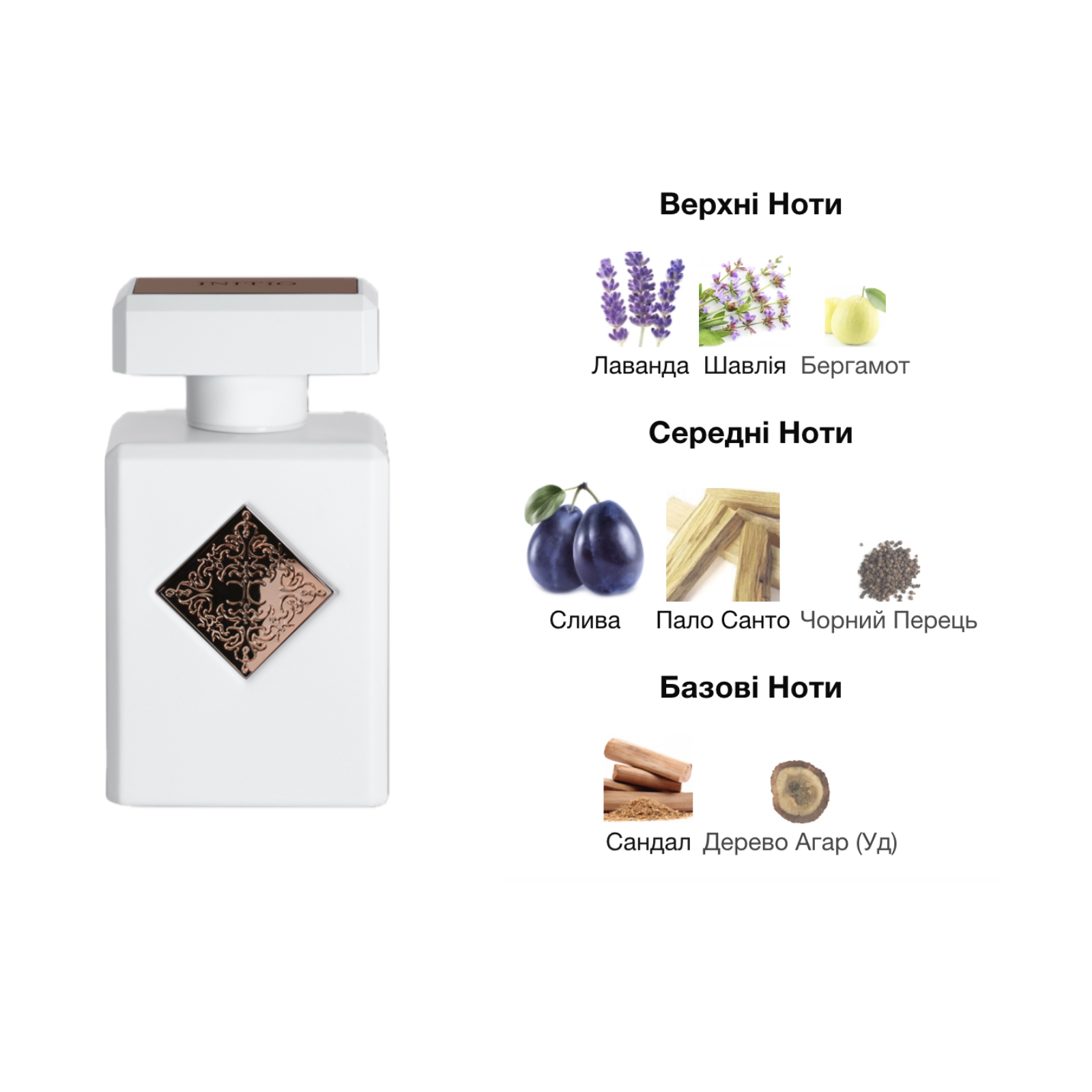 Eлегантний деревно-пряний аромат з лавандою, шавлією, бергамотом, сливою, пало санто, чорним перцем, сандалом та удом. Сучасний, витончений і глибокий.